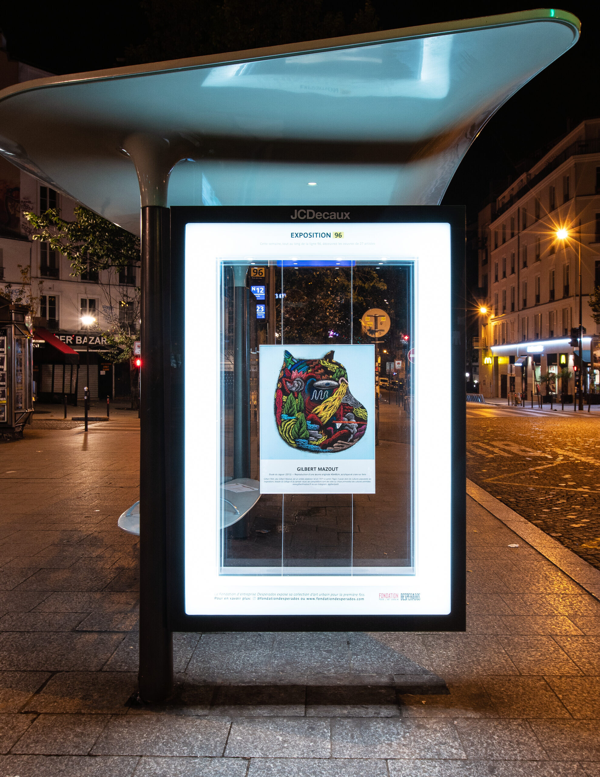 En détournant les codes de la publicité pour y présenter une sélection d’œuvres issues de sa collection, la Fondation transforme le mobilier urbain en support artistique et invite les passants à découvrir, au fil du trajet, la richesse de la création urbaine contemporaine. Fidèle à son esprit nomade et décalé, ce projet rend l’art accessible hors des circuits traditionnels et célèbre 27 artistes à travers un parcours visuel ouvert à toutes et tous — une parenthèse inattendue au cœur de la ville.