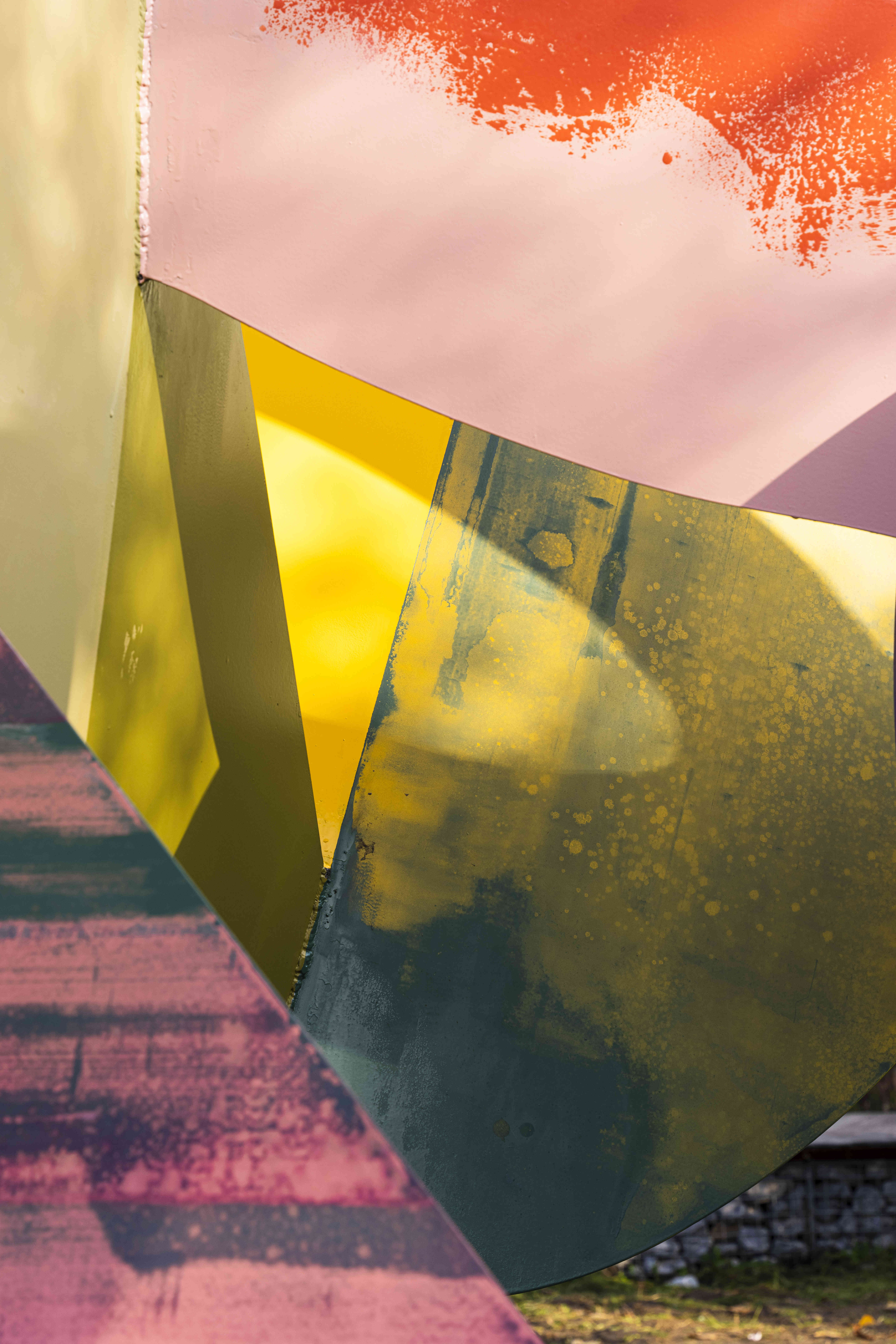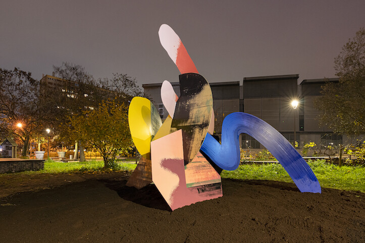 « J’avais envie d’explorer mon principe de composition dans l’espace. Créer un volume offrant plusieurs points de vue, invitant le spectateur à circuler autour, à s’y mesurer, à l’appréhender sous différents angles, voire même à le traverser », explique Blo.