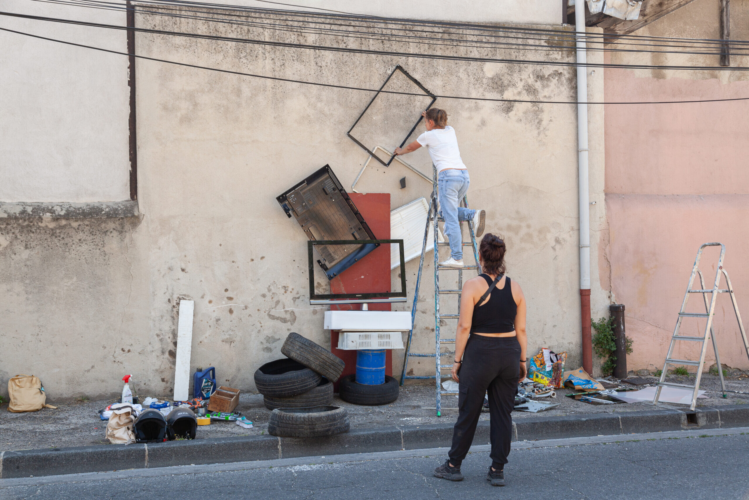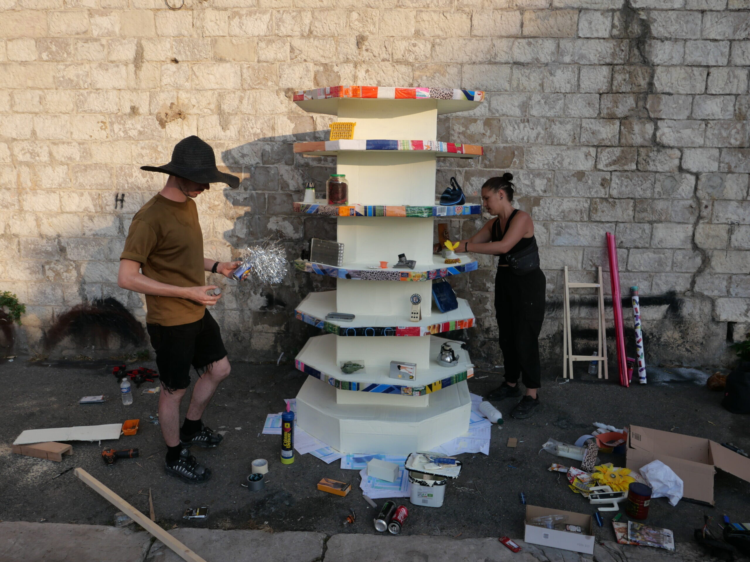 Conçues à partir de déchets et de rebuts récupérés dans les rues, matière de prédilection de l’artiste, ces œuvres ont été réalisées en collaboration avec cinq talents émergents sélectionnés à la suite d’un appel à projets. Chaque lauréat a imaginé une sculpture aux côtés de Lor-K, mêlant échanges créatifs et réflexion collective, avant de l’ériger dans l’espace public. Soumises aux intempéries, au passage des piétons et aux aléas du nettoyage urbain, ces sculptures sont appelées à disparaître. Seules les photographies garderont leur trace, témoins d’une création aussi brève qu’intense.